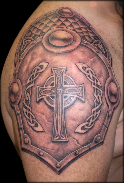 Warrior Knight Armor Shield Tattoo On Shoulder To Chest Entertainmentmesh